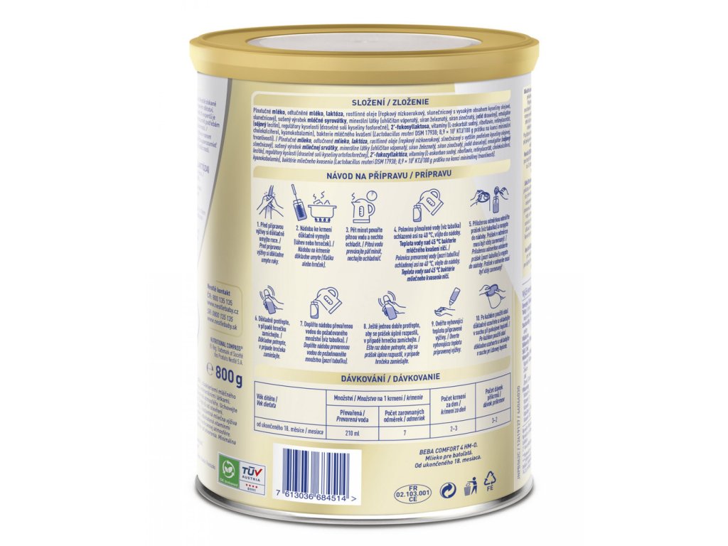 Zloženie výživy BEBA Comfort 4 HM-O je inšpirované zložením materského mlieka, obsahuje preto vyváženú kombináciu látok najvhodnejších pre vaše dieťa. Okrem 2'FL oligosacharidov je jeho súčasťou tiež probiotická baktéria L. reuteri, ktorá sa nachádza aj v mikroflóre dojčených detí. Nechýbajú ani vitamíny A, C a D, ktoré podporujú imunitu.