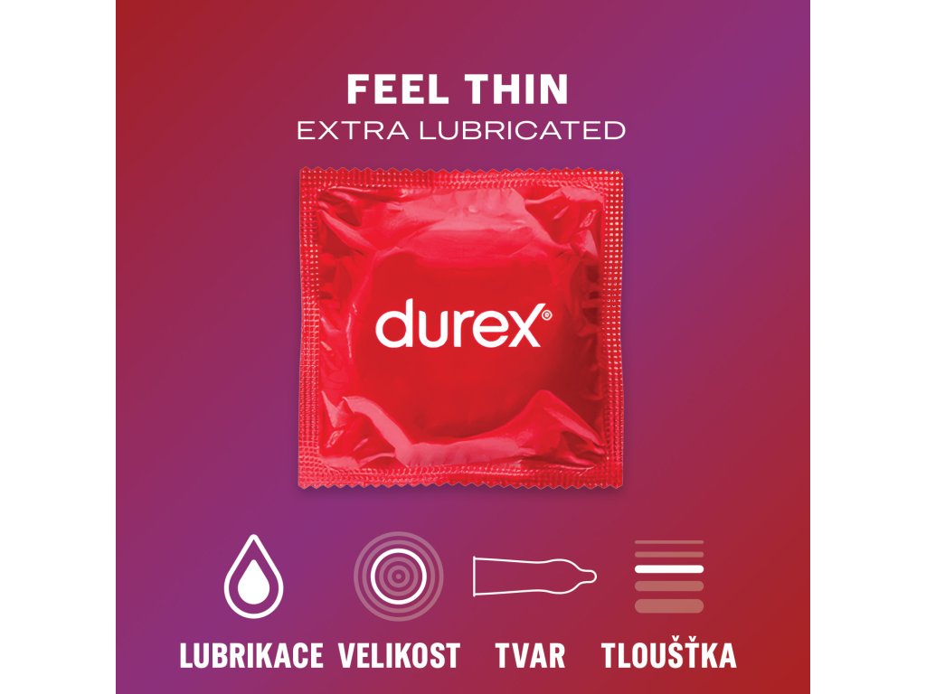 Kondómy Durex Feel Thin Extra Lubricated sú zdravotnícke prostriedky určené na zabránenie počatiu a ochranu pred pohlavne prenosnými chorobami. Žiadna antikoncepčná metóda vám nemôže poskytnúť 100 % ochranu pred otehotnením, HIV či inými pohlavne prenosnými chorobami.